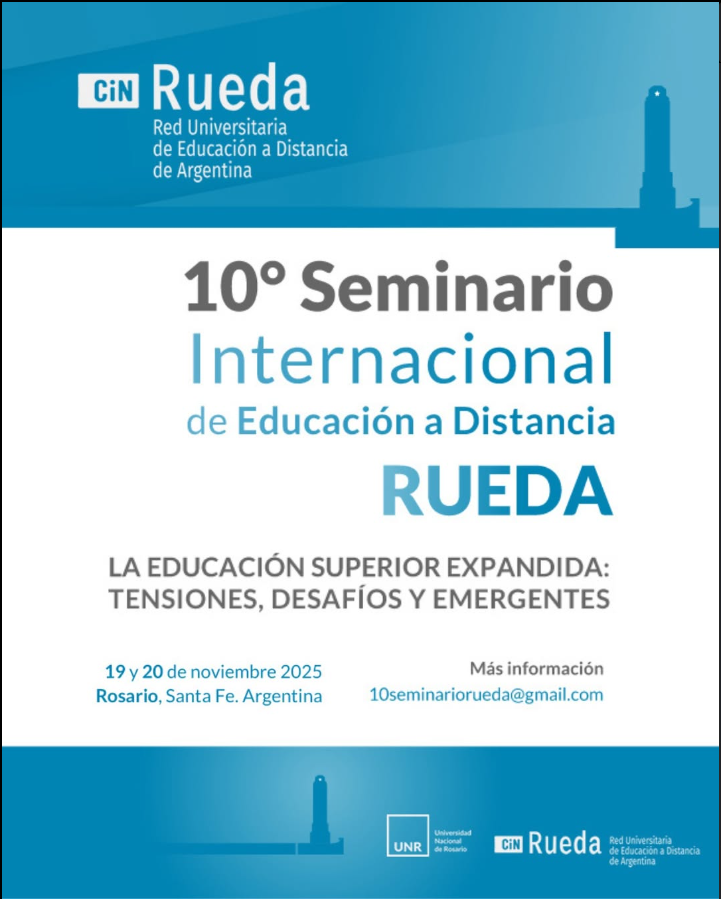 El 19 y 20 de noviembre, en modalidad híbrida, se desarrollará el 10º Seminario Internacional de Educación a Distancia RUEDA titulado “La Educación Superior expandida: tensiones, desafíos y emergentes”, en la Universidad Nacional de Rosario, Provincia de Santa Fe.